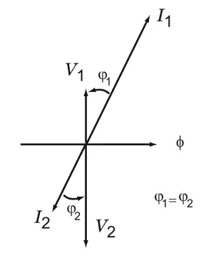 Si, à présent, on remplace les grandeurs temporelles par des grandeurs efficaces, on aboutit à la relation, valable dans le cas idéal :