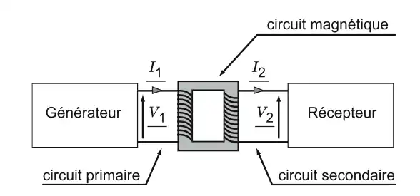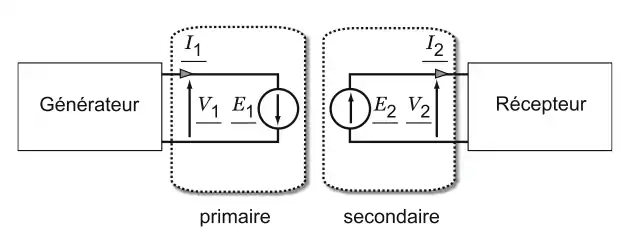 Le circuit électrique lié au générateur est appelé le circuit primaire, celui qui est lié au récepteur est appelé le circuit secondaire.