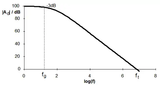 - , avec le gain en courant continu (f = 0), f la fréquence du signal d'entrée, et une fréquence particulière appelée fréquence de coupure.