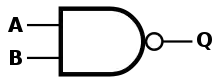 Au fait, si vous regardez le schéma de la porte NAND, vous verrez que son symbole est presque identique à celui d'une porte ET : seul le petit rond sur la sortie de la porte a été rajouté. Il s'agit d'une sorte de raccourci pour schématiser une porte NON.