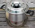 Constitué d'un récipient en métal épais hermétiquement clos par un couvercle équipé d'une valve de dépressurisation, il permet de cuire les aliments sous haute pression. |