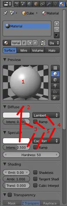 Le panneau Material permet de créer et éditer des matériaux assez simples (retenez que tout ce qui est simple dans Blender peut devenir compliqué), mais avec tout de même quelques effets tel que la transparence ou la réflexion, assez faciles à manipuler...