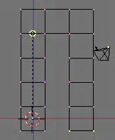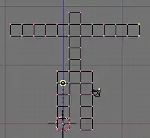 Pour créer la jambe droite, appuyez d'abord sur AKEY pour annuler la dernière sélection. Sélectionnez les quatre sommets du bas nécessaires à la création de la jambe droite. Extrudez-les comme précédemment. Faites-le plusieurs fois jusqu'à ce que la jambe droite soit similaire à la jambe gauche.