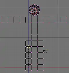 Maintenant, le torse! Appuyez sur AKEY pour annuler la sélection, positionnez-vous de face avec NUM1, sélectionnez les quatre points au sommet de la boîte reliant les deux jambes (le bassin). Extrudez-les cinq fois.