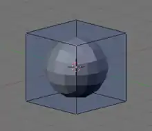 Maintenant souvenez-vous à propos du Subsurf Modifier, vous vous rappelez de la forme originale de notre cube ? Pressez TAB pour vous placer dans l'edit mode et vous verrez que le cube original est revenu pour nous hanter en tant que fil de fer autour du cube arrondi.