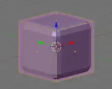 Cet effet peut être annulé en disant à Blender que nous voulons que notre objet retienne quelques aspects de sa forme originale. Pour cela on utilise l'outil Edge Creasing. Chaque bord des modèles a dans Blender une valeur de pli qui lui est associée. Le Subsurf Modifier s'en sert pour savoir à quel point les bords doivent être aiguisés. Par défaut la valeur pli est à 0, ce qui explique pourquoi notre cube a perdu tous ses bords aiguisés.