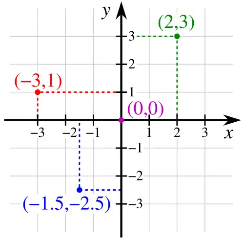 Si on se donne un plan, un point O dans ce plan, que l'on choisit comme origine, deux lignes droites perpendiculaires qui se coupent en O, un sens sur chacune de ces droites et une unité de longueur, chaque point du plan est représenté par un unique couple de nombres réels :