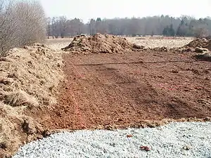 - décaissement (enlèvement de la terre végétale) sur une profondeur allant en général de 20 à 30 cm
