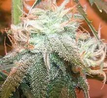 - fleurs séchées femelles (5-25 % THC) (qui forment les « têtes » ou « cocottes »), appelées « marijuana », ou des feuilles séchées (habituellement, les feuilles de la couronne fleurie des plantes femelles, appelées « feuilles de manucure ») ;