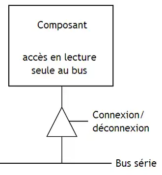Une autre possibilité est de permettre à un composant de recevoir des données sur le bus. Le composant peut alors surveiller le bus et regarder si des données lui sont transmises, ou se déconnecter du bus. Le composant a alors accès au bus en lecture seule.
