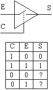 Le cas le plus simple est celui des sorties trois-état, qui peuvent soit fournir un 1, soit fournir un 0, soit être déconnectées. Malheureusement, les circuits intégrés normaux n'ont pas naturellement des entrées-sorties trois-état. Les portes logiques fournissent soit un 0, soit un 1, pas d'état déconnecté.