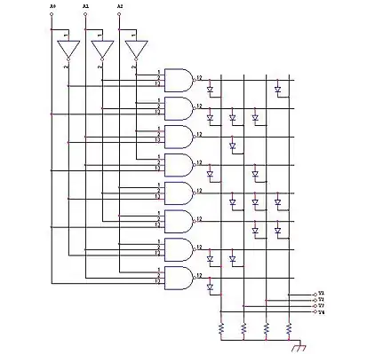 Les ROM à diodes sont des mémoires ROM fabriquées en combinant un décodeur avec des diodes pour obtenir un décodeur à sorties à collecteur ouvert. Le OU câblé ressemble donc à ceci, en tenant compte des diodes. Les entrées A et B sont les sorties normales du décodeur, ce ne sont pas des sorties à collecteur ouvert !