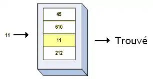 La donnée à rechercher dans la mémoire est envoyée à toutes les cases mémoires simultanément et toutes les comparaisons sont effectuées en parallèle.