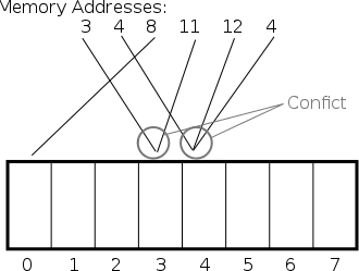 Sur les caches hashés, l'addition est remplacée par une autre opération, par exemple des opérations bit à bit du style XOR, AND ou OR, etc. Seulement, utiliser des opérations bit à bit pose un problème : il arrive que deux couples Adresse/décalage donnent le même résultat. Par exemple, le couple Adresse/décalage 11101111/0001 donnera la même adresse que le couple 11110000/0000. Dit autrement, deux adresses censées être différentes (après application du décalage) sont en réalité attribuées à la même ligne de cache. Il est toutefois possible de gérer ces situations, mais cela demande des astuces de haute volée pour faire fonctionner la mémoire cache correctement.