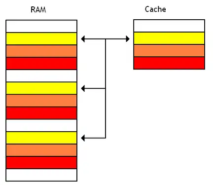 Concrètement, cela veut dire que du point de vue du cache, la RAM est découpée en blocs qui font la même taille qu'une ligne de cache, aux positions prédéterminées, sans recouvrement entre les blocs. Par exemple, pour un cache dont les lignes de cache font 256 octets, le premier bloc est à l'adresse 0, le second est 256 octets plus loin, c'est à dire à l'adresse 256, le troisième à l'adresse 512, la quatrième à l'adresse 768, etc. Une ligne de cache de 256 octets contiendra une donnée provenant d'un bloc de RAM de 256 octets, dont l'adresse est systématiquement un multiple de 256. Il n'est pas possible qu'une ligne de cache contienne un bloc de 256 octets dont l'adresse du premier octet serait l'adresse 64, ou l'adresse 32, par exemple. En clair, les adresses de ces blocs sont des multiples de la taille de la ligne de cache, de la taille des blocs. Cela rappelle les contraintes d'alignement vues dans le chapitre "Le modèle mémoire : alignement et boutisme", mais appliquées aux lignes de cache.