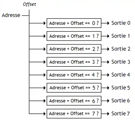 Mais les caches adressés par somme modifient le décodeur, qui est alors composé de comparateurs qui testent si la somme adresse + décalage est égale à une constante.