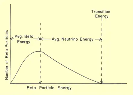 Les particules bêta ont une énergie cinétique variable, comprise entre zéro et une valeur maximale. Par exemple, la désintégration bêta du Bismuth 210 crée des électrons dont l'énergie est comprise entre 0 et 1,15 électron-volts, avec une moyenne à 0,4 électron-volts. Encore une fois, on peut établir un spectre bêta en faisant le compte pour un grand nombre de désintégrations bêta.