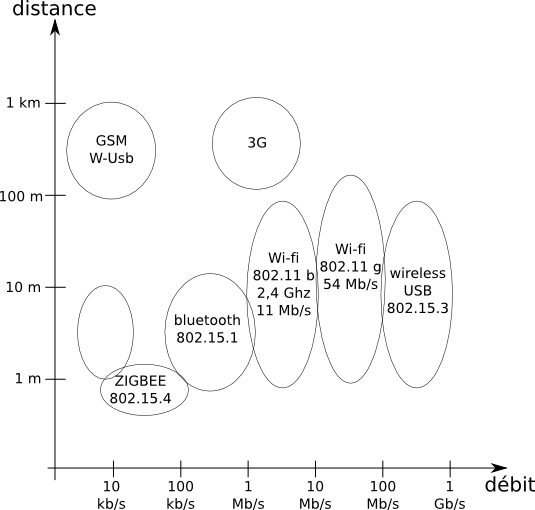 - Débits théoriques : de 1 à 3 Mbit/s selon la version de la norme