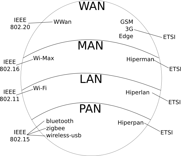Réseaux sans fil de type PAN, LAN, MAN et WAN