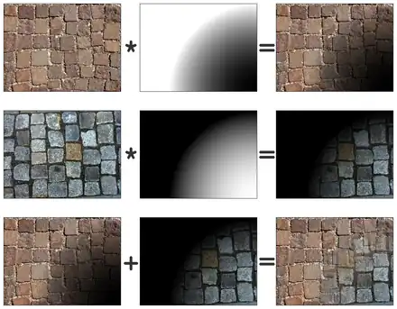 En plus de la profondeur, il faut aussi gérer la transparence. La transparence/opacité d'un pixel/texel est codée par un nombre, la composante alpha, qui est ajouté aux trois couleurs RGB. Plus la composante alpha est élevée, plus le pixel est opaque. En clair, tout fragment contient une quatrième couleur en plus des couleurs RGB, qui indique si le fragment est plus ou moins transparent. Si un fragment transparent est placé devant un autre fragment, la couleur du pixel sera un mélange de la couleur du fragment transparent, et de la couleur du (ou des) fragments placé·s derrière. Le calcul à effectuer est très simple, et se limite en une simple moyenne pondérée par la transparence de la couleur des deux pixels.
