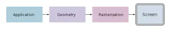 - une étape de traitement de la géométrie, qui gère tout ce qui a trait aux sommets et triangles ;