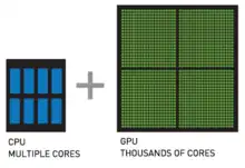 Pour profiter au mieux des opportunités de parallélisme, une carte graphique contient de nombreux processeurs, qui eux-mêmes contiennent plusieurs unités de calcul. Savoir combien de cœurs contient une carte graphique est cependant très compliqué, car la terminologie utilisée par les fabricants de carte graphique est particulièrement confuse. Il n'est pas rare que ceux-ci appellent cœurs ou processeurs, ce qui correspond en réalité à une unité de calcul d'un processeur normal, sans doute histoire de gonfler les chiffres. Et on peut généraliser à la majorité de la terminologie utilisée par les fabricants, que ce soit pour les termes warps processor, ou autre, qui ne sont pas aisés à interpréter.