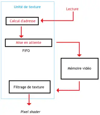L'unité de texture peut fonctionner en parallèle des unités de calcul, comme toute unité d'accès mémoire. Cela permet de continuer l’exécution du shader en cours, celui qui a lancé la lecture de texture, en parallèle de l'accès mémoire.