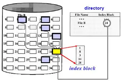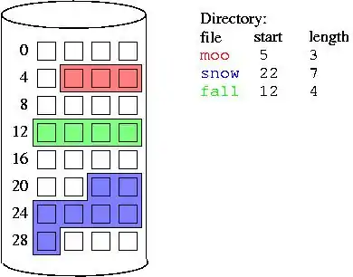 Sur d'autres systèmes de fichiers, les clusters d'un fichier ne sont donc pas forcément consécutifs sur le disque dur. Le système d'exploitation doit garder, pour chaque fichier, la liste des clusters qui correspondent à ce fichier. Cette liste est ce qu'on appelle une liste chaînée : chaque cluster indique quel est le cluster suivant (plus précisément, l'adresse du cluster suivant). L'accès à un fichier se fait cluster par cluster. L'accès à un cluster bien précis demande de parcourir le fichier depuis le début, jusqu'à tomber sur le cluster demandé. Avec cette méthode, la défragmentation reste utile sur les HDD, vu que l'accès à des secteurs consécutifs est plus rapide. On parle d'allocation par liste chaînée.