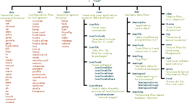 Linux a une particularité : il normalise la place de certains répertoires bien précis du système d'exploitation. L'arborescence des répertoires est en effet standardisé par le Filesystem Hierarchy Standard, la dernière version datant de juin 2015.