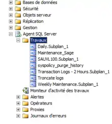 Le menu "Travaux" situé sous les bases permet de programmer des tâches planifiées (ex : troncature de logs ou de tables).