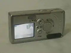 Écran du Canon Ixus i silver. Cet appareil n'a aucun viseur optique.
