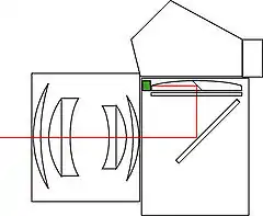 Dans l'appareil reflex Leicaflex SL, le miroir principal présente, sur environ 6,25 % de sa surface, une zone semi-transparente qui laisse passer environ 25 % de la lumière. Un miroir auxiliaire légèrement concave renvoie la lumière prélevée vers la cellule, qui se trouve au fond du boîtier, très près de l'obturateur. Lors de la prise de vue, ce petit miroir se rabat sur le miroir principal pour occulter la lumière qui pourrait entrer par le viseur.