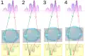 Si la mise au point est réalisée, les deux paires de photo diodes situées de part et d'autre du cercle théorique de mise au point fournissent les mêmes signaux. Si tel n'est pas le cas, alors c'est une autre paire de photo diodes, plus éloignée ou plus rapprochée, qui fournit le signal le plus important, ce qui permet de savoir où se fait la mise au point et de déplacer l'objectif en conséquence grâce à un servomoteur.