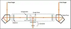 Ces appareils utilisent la vision binoculaire et engendrent deux images plus ou moins décalées qu'il s'agit de faire coïncider. Lorsque la coïncidence est obtenue, la mesure de la position des éléments optiques du système permet de connaître la distance de la cible. En pratique, lorsque la base est très grande, on abandonne les systèmes mécaniques de rotation des miroirs, fragiles et peu précis, au profit de prismes compensateurs assurant la convergence des trajets optiques vers le point visé. Les miroirs de renvoi eux-même sont remplacés par des prismes à réflexion totale indéréglables et plus faciles à entretenir.