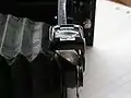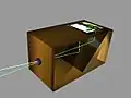 Appareil Rittreck 6x6 : afin de réduire la place occupée par le miroir entre l'obturateur et l'objectif, le miroir recule en même temps qu'il bascule pour occulter la fenêtre de visée. |
