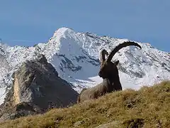 Il est bien naturel de situer le bouquetin dans son décor habituel mais ici le photographe n'avait pas vraiment la chance avec lui. Le problème vient surtout de l'éclairage très mauvais qui transforme pour partie l'animal en une tache sombre à contre jour où beaucoup de détails sont noyés. Il n'était évidemment pas possible d'envoyer un éclair de flash pour déboucher les ombres, comme on aurait pu le faire en d'autres circonstances. Comme la montagne est à la fois nette et lumineuse, c'est elle qui attire le plus le regard et l'on se trouve alors en présence de deux sujets qui se font concurrence. |