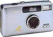 Un appareil très plat, doté d'un objectif fixe 3,5/28 mm, qui enregistre les conditions de prise de vue, la date et l'heure.