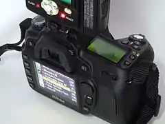 | Alimentation | batterie lithium-ion EN-EL3e, pack MB-D80 optionnel contenant une ou deux batteries EN-EL3 ou 6 piles alcalines AA ou 6 batteries NiMH AA, ou batteries lithium FR6, ou batteries Nickel-manganèse AA ZR6, ou adaptateur secteur optionnel EH-5 |