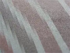 - Les textures des tissus sont également très variées. Les trames à mailles carrées de la gaze ou de la tarlatane ne sont pas forcément à rejeter mais elles ont tendance à donner un flou directionnel avec deux directions privilégiées tournées de 90 ° l'une par rapport à l'autre. Le tissage en nid d'abeille du tulle ou le tricot d'un bas transparent n'ont pas cette propriété. Nous employons ici le terme « propriété » plutôt qu'inconvénient car dans le domaine de l'esthétique, certains apprécient de que d'autres rejettent. Il faut aussi noter que les fibres naturelles sont souvent effilochées, présentant de multiples petites « barbes » réparties de façon totalement anarchique et dont l'effet est défavorable, car elles diminuent la transparence du tissu tout en favorisant le voile ; les fibres synthétiques n'ont généralement pas cet inconvénient.