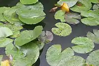 Ici le polariseur permet d'atténuer les reflets d'une part sur l'eau du bassin et sur les gouttes laissées par la pluie, d'autre part sur les feuilles, qui sont brillantes. Le vert du feuillage retrouve sa saturation et l'on aperçoit quelques détails sous la surface de l'eau. Parfois, on n'a pas intérêt à supprimer complètement ces reflets, car alors la scène ne semble plus naturelle. Nikon Coolpix 4500, filtre tenu devant l'objectif.