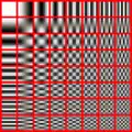 La quatrième image présente une structure bien plus grossière encore avec de nombreux groupes de pixels identiques formant de vastes zones de teinte uniforme :