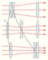 « Kit » permettant d'obtenir les focales de 15, 25, 35, 45, 55, 65 et 75 cm ; le tube de base comporte entre autres un diaphragme à iris.