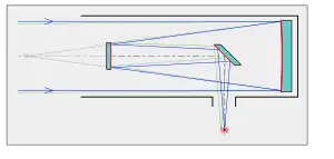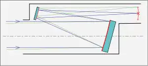 En 1672, Laurent Cassegrain imagina de percer le miroir principal de façon que la lumière puisse ressortir dans l'axe après avoir été renvoyés par un second miroir. Cette méthode permet d'une part de conserver la direction d'observation et d'autre part de « replier » sur lui-même le faisceau lumineux, ce qui diminue beaucoup l'encombrement du système. En raison de la présence de l'ouverture et du miroir de renvoi, le miroir principal ne peut pas être utilisé dans toute sa surface, mais la diminution de luminosité qui en résulte reste relativement faible.
