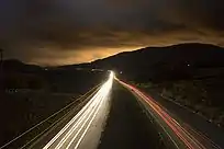 Les paysages de nuit peuvent être agrémentés de belle façon par les traces laissées par des objets lumineux. Ici le passage des automobiles permet de donner beaucoup de profondeur à la scène. |