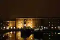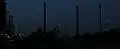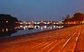 Dusseldorf La nuit est là mais le ciel un peu brumeux est éclairé par les lumières de la ville, ce qui donne le même résultat que précédemment. La présence des bateaux au premier plan donne beaucoup de profondeur à la photo. |