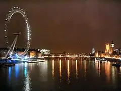 L'œil de Londres Cette version est nettement meilleure, le bruit est beaucoup plus faible et le rendu des détails, sans être impressionnant, est beaucoup plus fin. Les données Exif indiquent que le photographe a choisi de passer en exposition manuelle, avec un temps de pose de 2,5 s, donc dix fois plus long que pour la photographie précédente, à f/2,8. La sensibilité n'est pas précisée mais elle devait être réduite à sa plus faible valeur. |