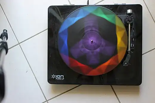 ![]() Platine tournant à 78 tours/min pour obtenir un flou visible avec une vitesse d'ouverture de l'appareil photo de 1/15 s |