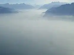 Lac de Garde, Italie Nous avons ici un « souvenir de voyage » comme ont pu en rapporter des milliers de touristes émerveillés par la région et dont la seule valeur est celle, affective, que peut lui attribuer son auteur. Pour le spectateur extérieur, cette photo n'a guère d'intérêt, elle ne met en valeur aucun élément caractéristique du lieu, elle ne comporte aucun véritable sujet. Par ailleurs, son relief est faible car il manque un étagement de plans convaincant. Les moignons de feuillages visibles en bas à gauche perturbent l'image plus qu'ils ne la servent. |