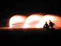 Origine inconnue Le temps de pose est toujours trop court mais heureusement les boules de feu éjectées dans toutes les directions étaient assez lumineuses pour que les traits de fumée puissent suggérer le mouvement. La mauvaise mise au point et le bougé se font un peu moins sentir. |