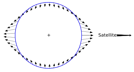 Les points d'un satellite qui sont plus proches de la planète seront plus attirés que les points situés plus loin (vu que la gravité varie avec la distance). Cette différence de force gravitationnelle entre deux points éloignés, appartenant à un même corps, est appelée la force de marée.
